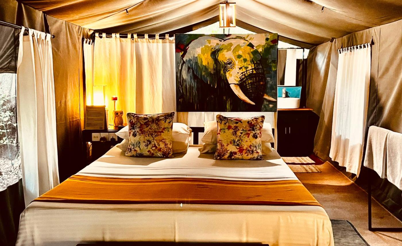 Glamping suite bordering wilpattu with guided safari. This spacious tent features a private bathroom with a shower and free toiletries. ;